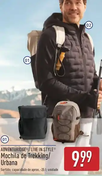 ADVENTURIDGE/LIVE IN STYLE Mochila de Trekking/ Urbana em promoção esta semana na ALDI