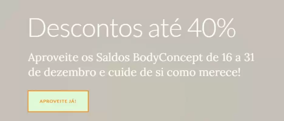 Válido: 16 dez. até 31 dez.Lojas BodyConcept perto de Carcavelos