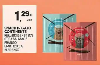 Esta promoção está disponível em várias lojas, veja todos os produtos para obter a Snack p/gato continente mais barata. Caso gostaria de saber se este produto tem um desconto maior noutra loja, verifique a categoria 'Supermercados'. Também pode achar estas ofertas interessantes: Snack p/gato continente, Snack p/gato continente & Snack líquido p/gato continente pet.