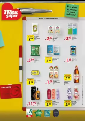 Todas as semanas há um novo Folheto Meu Super da categoria Supermercados disponível. Nesta página pode ver sempre o folheto mais recente, com validade de 01-04-2026 até 13-04-2026. Fique por dentro das campanhas locais em Mangualde e saiba exatamente quando o novo folheto estará acessível.