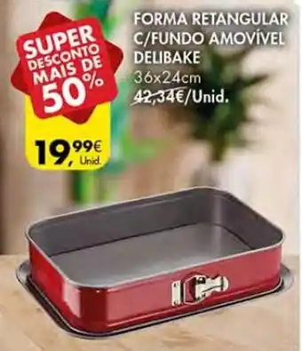 Forma retangular c/fundo amovível delibake 36x24cm com desconto em Pingo Doce