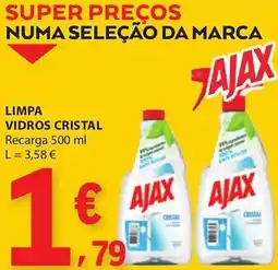 | Limpa vidros cristal ajax recarga 500 ml | E.Leclerc | 1,79 € | 15 janeiro 2026 | 21 janeiro 2026 | |||