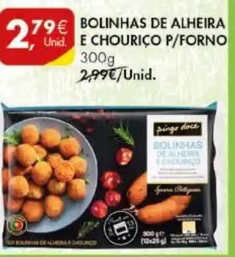 Pingo Doce Bolinhas de Alheira e Churiço Forno 300g promoçãoBolinhas de Alheira e Churiço Forno 300gPingo Doce2,79 €29 junho 202105 julho 2021