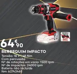| BERBEQUIM SEM FIO Bateria: Li-ion 18 V - 2 Ah Com percussão 2 baterias | 2 velocidades | Bricomarché | 94,00 € | 27 julho 2023 | 13 agosto 2023 | |||