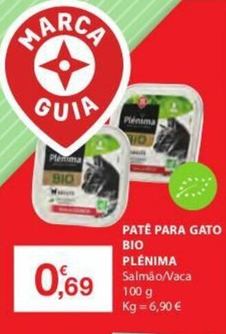 | PATÊ PARA GATO BIO PLÉNIMA 100g | E.Leclerc | 0,69 € | 26 setembro 2023 | 08 outubro 2023 | |||