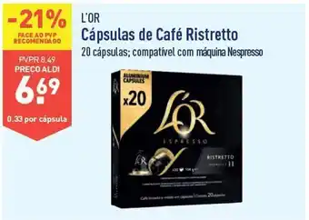 | L'or - capsulas de cafe ristretto | ALDI | 4,39 € | 3,39 € | 1,00 € Desconto | 28 julho 2025 | 03 agosto 2025 | |