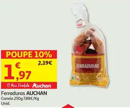 Atualmente existem várias promoções de Canela em vigor, incluindo em Minipreço e noutras grandes marcas. Há campanhas como LEVE 2 PAGUE 1, LEVE 3 PAGUE 2 ou -25% em produtos como Ferraduras AUCHAN Canela, Mão s/canela novilho congelada e Vinho Alentejo Terras de Monsaraz Reserva Tinto. Use os filtros para selecionar por formato, quantidade ou marca da sua preferência.