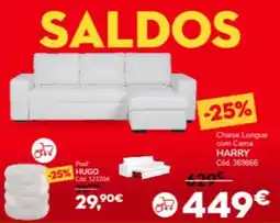 Atualmente existem várias promoções de Chaise longue em vigor, incluindo em Conforama e noutras grandes marcas. Há campanhas como LEVE 2 PAGUE 1, LEVE 3 PAGUE 2 ou -25% em produtos como Chaise Longue com Cama HARRY, Chaise Longue Reversivel com Cama Tecido OASIS e Chaise Longue Reversivel com Cama Tecido HOXTON. Use os filtros para selecionar por formato, quantidade ou marca da sua preferência.