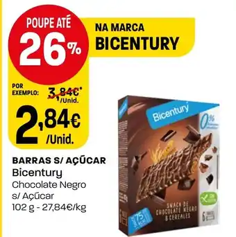 | BARRAS S/ AÇÚCAR Bicentury Chocolate Negro s/ Açúcar 102g | Intermarché | 3,84 € | 2,84 € | 1,00 € Desconto | 02 novembro 2023 | 08 novembro 2023 | |