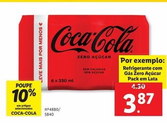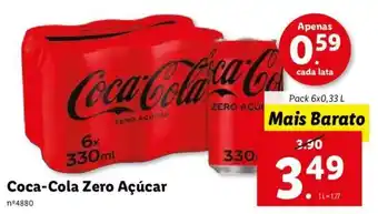 Lidl Coca-Cola Zero Açúcar 6x0,33L promoçãoCoca-Cola Zero Açúcar 6x0,33LLidl3,90 €3,49 €0,41 € Desconto15 novembro 202121 novembro 2021