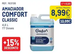 Atualmente existem várias promoções de Comfort em vigor, incluindo em Makro e noutras grandes marcas. Há campanhas como LEVE 2 PAGUE 1, LEVE 3 PAGUE 2 ou -25% em produtos como Amaciador comfort classic, Amaciador comfort professional concentrado e Tinta + primário matt pro 3. Use os filtros para selecionar por formato, quantidade ou marca da sua preferência.
