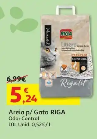 | Areia p/ gato riga odor control 10l | Auchan | 6,99 € | 5,24 € | 1,75 € Desconto | 21 setembro 2022 | 06 outubro 2022 | |