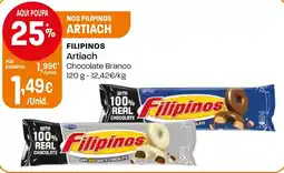 Atualmente existem várias promoções de Filipinos em vigor, incluindo em Intermarché e noutras grandes marcas. Há campanhas como LEVE 2 PAGUE 1, LEVE 3 PAGUE 2 ou -25% em produtos como Filipinos Artiach, Gelado cornetto filipinos e Pera rocha do oeste d.o.p. nacional. Use os filtros para selecionar por formato, quantidade ou marca da sua preferência.