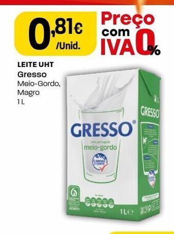 | LEITE UHT Gresso Meio-Gordo, Magro 1L | Intermarché | 0,79 € | 07 setembro 2023 | 13 setembro 2023 | |||