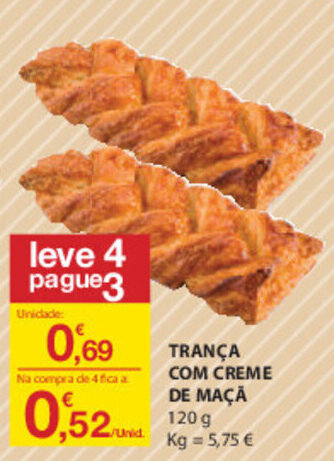 | Trança com Creme de Maçã 120g | E.Leclerc | 0,69 € | 06 maio 2021 | 12 maio 2021 | |||