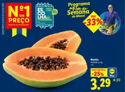 | Mamão 1 kg | Lidl | 4,39 € | 3,49 € | 0,90 € Desconto | 23 fevereiro 2026 | 01 março 2026 | |