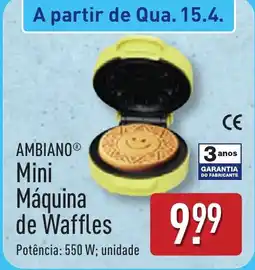 1ALDI AMBIANO Mini Máquina de Waffles promoçãoAMBIANO Mini Máquina de WafflesALDI9,99 €13 abril 202619 abril 2026 Ver oferta