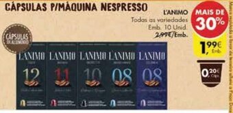 | Cápsulas P/Máquina Nepresso L'Animo 10Unid | Pingo Doce | 2,99 € | 1,99 € | 1,00 € Desconto | 23 novembro 2021 | 29 novembro 2021 | |