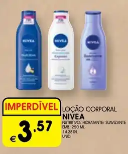 Atualmente existem várias promoções de Nivea em vigor, incluindo em Spar e noutras grandes marcas. Há campanhas como LEVE 2 PAGUE 1, LEVE 3 PAGUE 2 ou -25% em produtos como Creme nivea corpo hidrante, Loção corporal nivea e Body milk / smooth/ hidratante nivea. Use os filtros para selecionar por formato, quantidade ou marca da sua preferência.