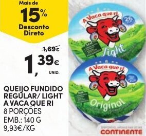 | Queijo Fundido Original/Light A Vaca Que Ri 140g | Continente | 1,39 € | 28 setembro 2021 | 04 outubro 2021 | |||