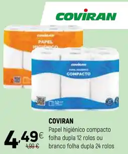 Coviran COVIRAN Papel higiénico compacto folha dupla 12 rolos ou branco folha dupla 24 rolos promoção