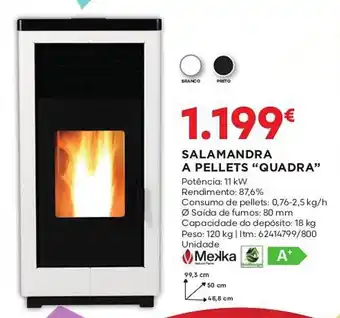 | SALAMANDRA A PELLETS "QUADRA" Potência: 11 kW | Bricomarché | 1 199,00 € | 30 novembro 2023 | 17 dezembro 2023 | |||