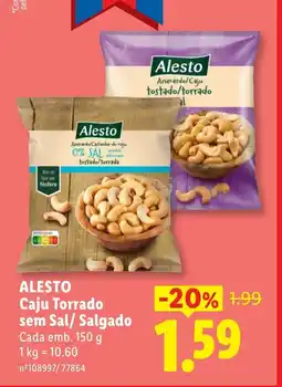 | Alesto Caju Torrado sem Sal Emb. 150 g | Lidl | 2,39 € | 2,19 € | 0,20 € Desconto | 18 abril 2024 | 24 abril 2024 | |