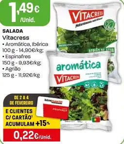 Intermarché Vitacress SALADA Ibérica, Aromática promoçãoVitacress SALADA Ibérica, Aromática 100 gIntermarché1,49 €08 janeiro 202614 janeiro 2026