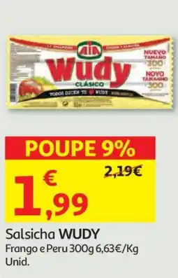 | Salsicha WUDY 300 g | Auchan | 2,19 € | 1,99 € | 0,20 € Desconto | 05 fevereiro 2026 | 12 fevereiro 2026 | |