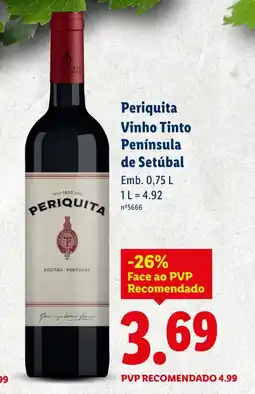 2Lidl Periquita Vinho Tinto Península de Setúbal promoçãoPeriquita Vinho Tinto Península de Setúbal 0.75 lLidl3,69 €26 janeiro 202601 fevereiro 2026 Ver oferta